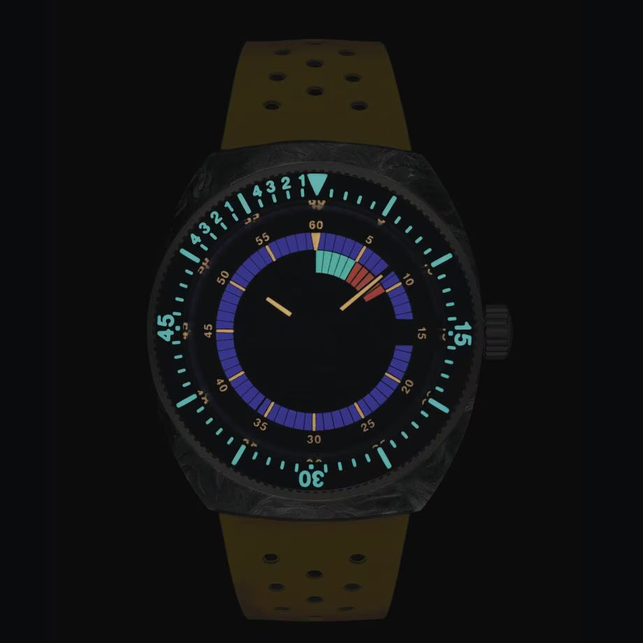 Pod wysoce odpornym na zarysowania szkłem szafirowym z powłoką antyrefleksyjną znajduje się wyjątkowo funkcjonalna tarcza. Design tarczy niemal idealnie odzwierciedla projekt z pierwszych modeli. Posiada ona czytelne wskazówki, żółty ring minutowy i skalę regatową. Skala regat to funkcja dla żeglarzy, która odmierza minuty od 0 do 10 w czasie procedury startu w regatach. Na godzinie trzeciej znalazło się okienko datownika z aktualnym dniem miesiąca. Super-LumiNova oświetli bezel, wskazówki i tarczę gdy zabraknie światła. Tarcza w stylu retro zaprojektowana jest w taki sposób, aby już po pierwszym spojrzeniu można było odczytać z niej dane.