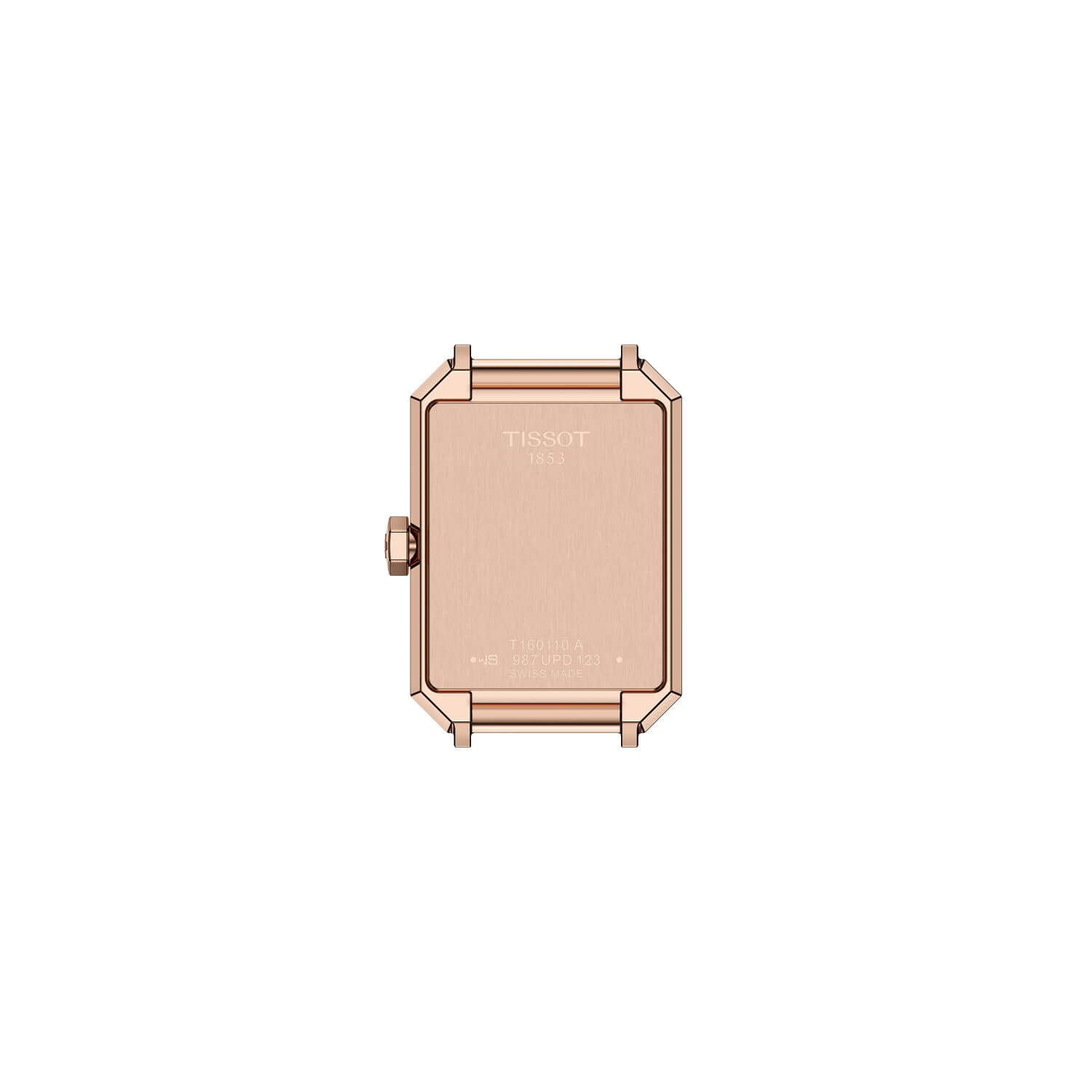 Koperta w rozmiarze 21.80 mm została wykonana ze stali szlachetnej i pokryta różowo złotą powłoką PVD, co gwarantuje trwałość i elegancki połysk przez lata. Tarcza wykonana jest z masy perłowej z pięknym unikatowym wzorem z minimalistycznymi indeksami, a całość dopełnia szwajcarski mechanizm wyposażony we wskaźnik End Of Life, przypominający o konieczności wymiany baterii. Prostokątny zegarek Tissot T160.110.36.113.00 na pasku skórzanym to propozycja, która w równym stopniu stawia na estetykę i niezawodność.