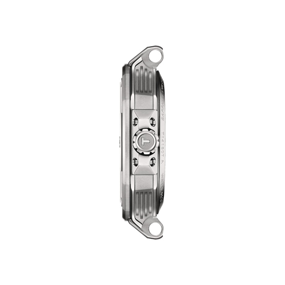 Zegarek męski Tissot T-Race Powermatic 80 T1418071705100 oferowany jest w rozmiarze 41 mm. Koperta ze stali szlachetnej w kolorze srebrnym wzbogacona jest o detale wzorowane światem motocykli. Bezel z sześcioma ozdobnymi śrubami i osłona koronki są inspirowane tarczą hamulcową i jej zaciskiem. Rewers obudowy prezentuje przezroczysty dekiel, który umożliwia obserwację pracy mechanizmu. Zegarek Tissot jest wodoszczelny do głębokości 100 metrów, co gwarantuje bezpieczeństwo pracy mechanizmu w czasie pływania. Producent swój automatyczny zegarek TISSOT T-Race zestawił z elastycznym paskiem gumowym, który zapewni komfort w czasie noszenia.