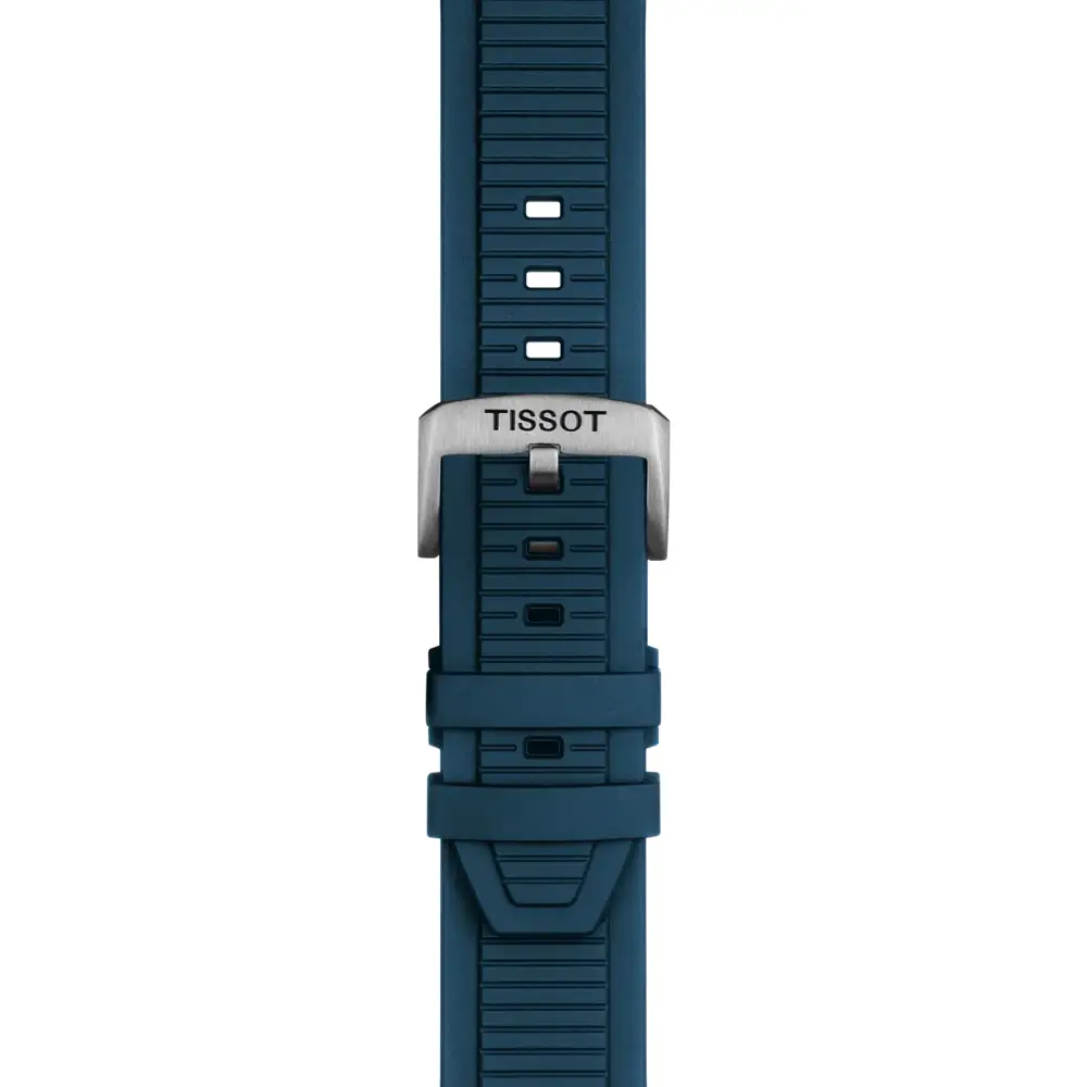 Rozbudowany chronograf z trzema subtarczami umożliwia dokładne odmierzanie czasu, natomiast skala tachymetru pozwala na obliczanie średniej prędkości na określonym dystansie, co podkreśla sportowy charakter modelu. Praktyczny datownik umieszczony na tarczy zwiększa jego codzienną użyteczność. Całość uzupełnia wytrzymały, elastyczny pasek z tworzywa w kolorze niebieskim, wyposażony w klasyczne zapięcie, który zapewnia stabilne dopasowanie i komfort noszenia. Tissot Chronograph T1414172704100 na pasku gumowym to propozycja dla mężczyzn, którzy chcą mieć na nadgarstku zegarek sportowy z tachymetrem i chronografem, łączący wyrazisty styl z techniczną precyzją.