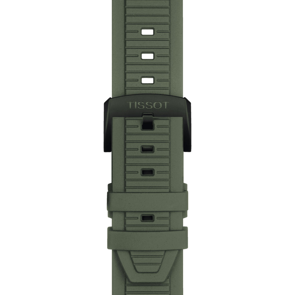 Szwajcarski zegarek Tissot T1414173706102 z chronografem wyróżnia się 45-milimetrową kopertą ze stali szlachetnej 316L, pokrytą ciemnozieloną powłoką PVD, co dodaje mu surowego, ale stylowego charakteru. Tarcza w kolorze ciemnej szarości harmonizuje z zielonymi wskazówkami i indeksami, tworząc sportowy i nowoczesny wygląd. Dodatkowo szafirowe szkło odporne na zarysowania z powłoką antyrefleksyjną zapewnia trwałość oraz wyrazistość odczytu w każdych warunkach. Dopełnieniem sportowej estetyki jest zielony silikonowy pasek z wygodną sprzączką, który nie tylko świetnie wygląda, ale także zapewnia wygodę noszenia.