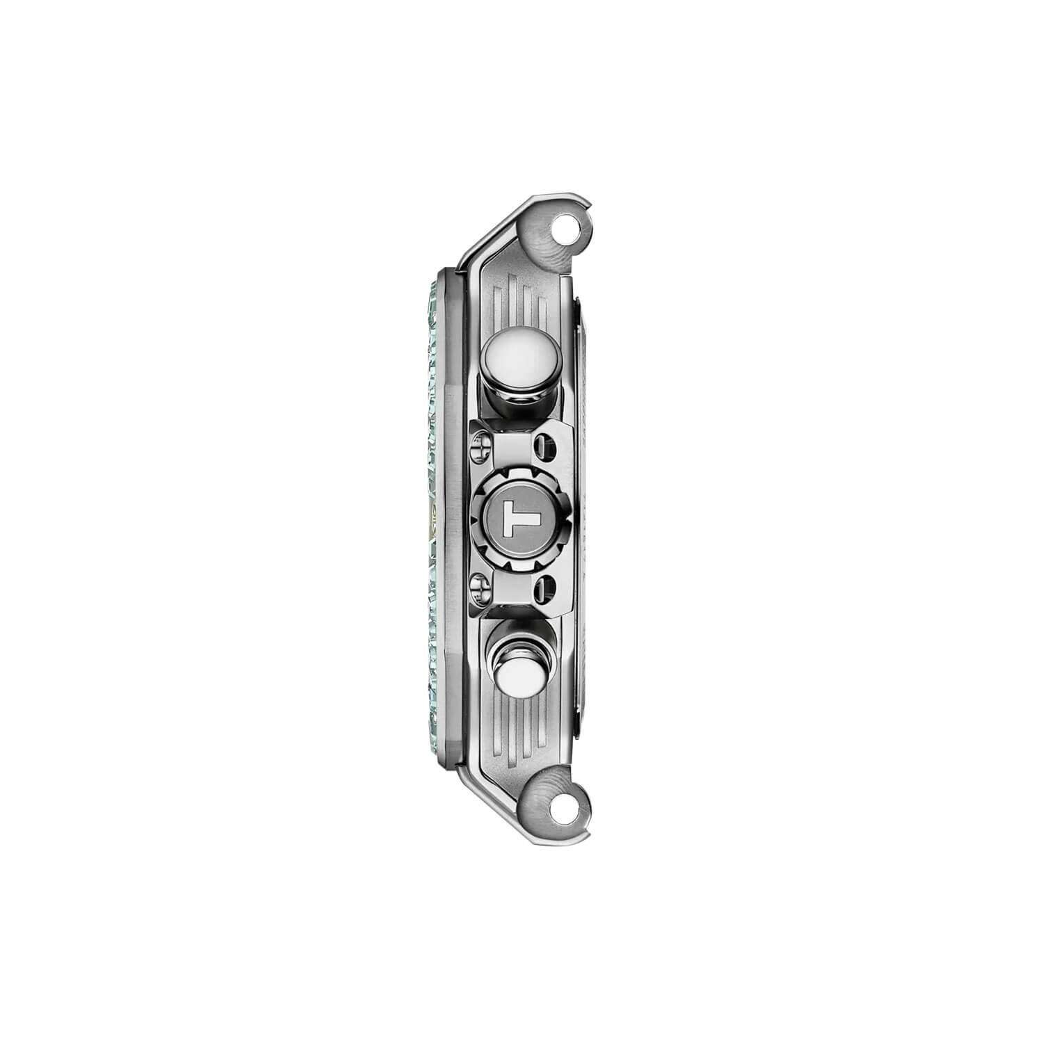 Tissot od lat pozostaje oficjalnym chronometrażystą w najważniejszych wydarzeniach sportowych, w tym NBA, kolarstwie i MotoGP™, a kolekcja T-Race powstała właśnie z tej pasji do dynamiki i rywalizacji. W tym zegarku również odnajdziemy charakterystyczne dla serii detale: pierścień inspirowany tarczą hamulcową, ergonomiczne przyciski stopera czy funkcjonalny chronograf pozwalający na precyzyjne odmierzanie czasu.