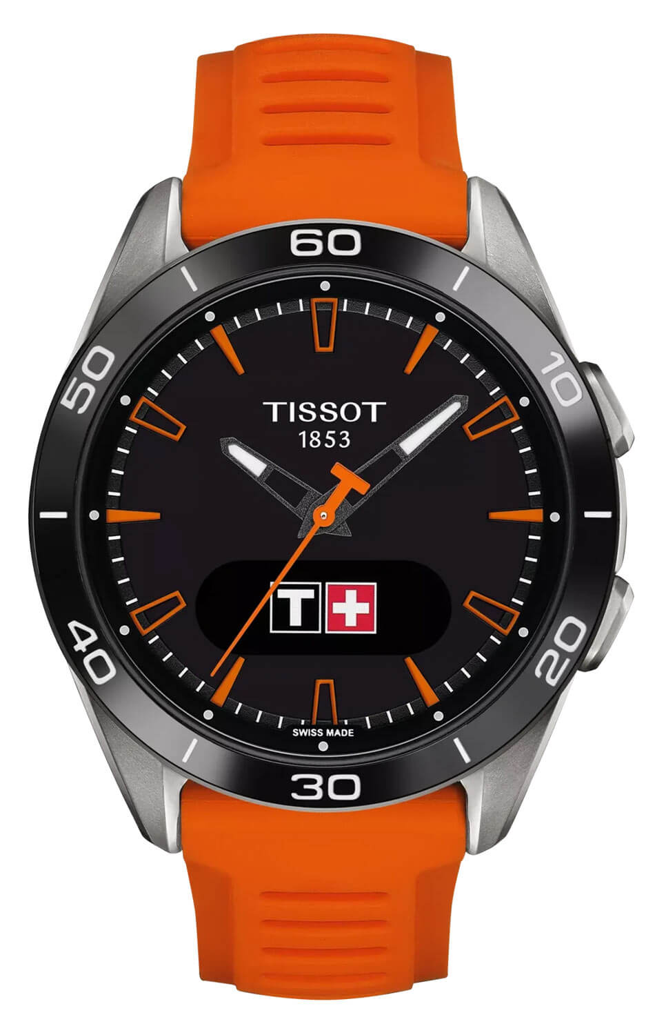 Dodatkowo solarny zegarek T-Touch Connect Sport T1534204705102 jest wyposażony w dotykowe szkło szafirowe, opracowane przez TISSOT, zapewniające doskonałą ochronę przed zarysowaniami. Wyposażony jest również w ekran AMOLED, który reaguje zarówno na bezpośredni dotyk, jak i na boczne przyciski. Interaktywną tarczę otacza elegancki ceramiczny pierścień lunety z 60-minutową podziałką. Kopertę 43.75 mm tego inteligentnego zegarka wykonano z hipoalergicznego i antymagnetycznego tytanu, co sprawia, że jest lekka i doskonale wykończona szczotkowanym i polerowanym wykończeniem. Silikonowy, wymienny pasek w kolorze pomarańczowym posiada standardowe zapięcie i długości: godz. 6, 118.80 mm, godz. 12, 80.55 mm.