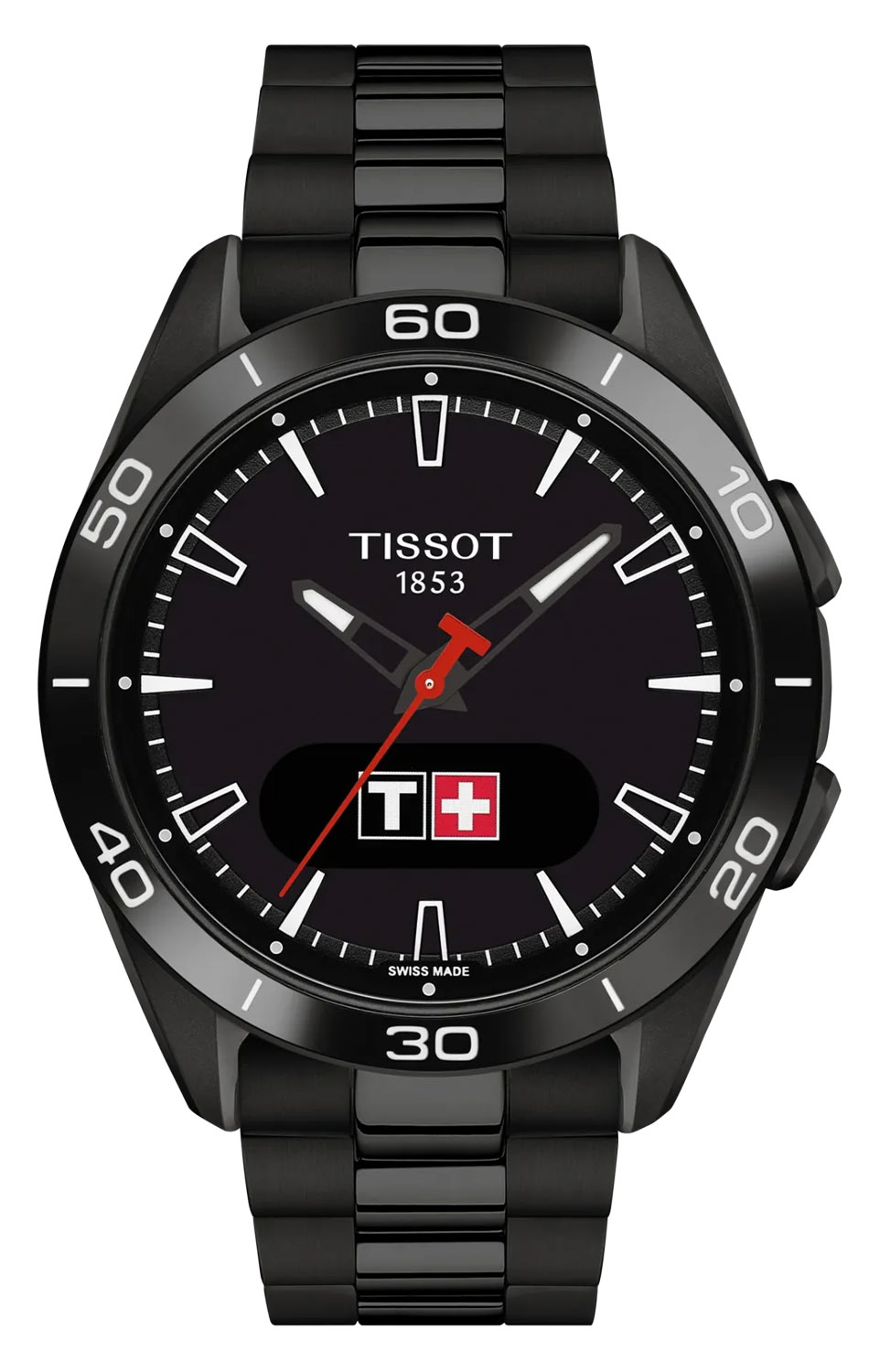 Nowoczesny smartwatch męski Tissot z tytanu. Model na bransolecie pokryty czarną powłoką PVD. Wyposażony w dotykowe szkło szafirowe, które chroni hybrydową tarczę. Wielofunkcyjny zegarek z pulsometrem i wieloma aktywnościami fizycznymi.