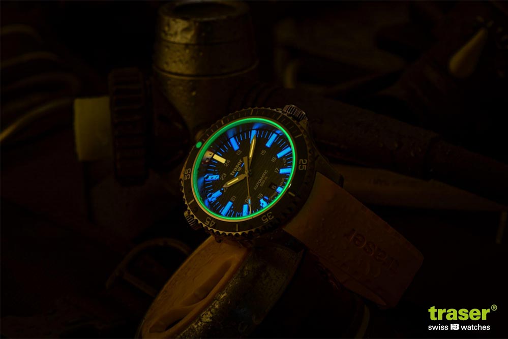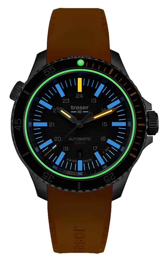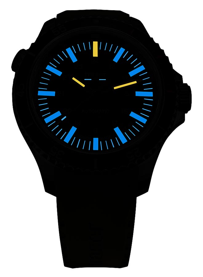 Manufakturowe podświetlenie trigalight® od firmy mb-microtec oparte na właściwościach gazu trytowego, zaaplikowane na indeksy oraz wskazania zapewnia: nawet 100 x jaśniejsze światło od tradycyjnych farb luminescencyjnych; światło o jednakiej intensywności przez okres około 10 lat; widoczność przez około 25 lat bez ładowania! Całkowicie samowystarczalne podświetlenie zegarka sprawdzi się u każdego, a szczególnie u osób lubiących ekstremalne wyprawy głębinowe, gdzie na próżno szukać promieni słonecznych. Aby zegarek był jeszcze bardziej funkcjonalny, twórcy wzbogacili oznaczenia na tarczy i ceramicznym bezelu dodatkowo w substancję Super-LumiNova, a szkło w uszczelkę luminescencyjną. Całość zabezpiecza najwyższej jakości, niemal niemożliwe do zarysowania szkło szafirowe z antyrefleksem po wewnętrznej stronie. Koperta zawieszona jest na brandowanym pasku kauczukowym w doskonale widocznym pod wodą kolorze żółtym stylowo dopasowanym do szarego cyferblatu ze wzorem fal i pierścienia z żółtymi akcentami. Do powyższego modelu producent dostarcza czarny pasek z kauczuku gratis.