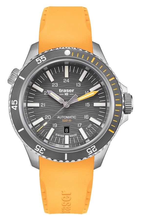 Nowe wydanie outdoorowego zegarka do profesjonalnego nurkowania marki traser® jest już dostępne ze szwajcarskim mechanizmem mechanicznym o automatycznym naciągu! Zegarek męski Traser P67 Diver Automatic Grey T100 110331 to długo wyczekiwany, mechaniczny następca kwarcowego modelu P67 SuperSub. Tak, jak jego poprzednik, spełnia on rygorystyczne normy ISO 6425, definiujące wymogi dla czasomierzy do zawodowego nurkowania. Jego okazała, 46-milimetrowa i wodoszczelna aż do 500 metrów obudowa z wysokogatunkowej stali nierdzewnej wyposażona jest w zawór helowy oraz specjalnie zabezpieczoną koronkę. Tarcza jest doskonale czytelna zarówno w dzień, w nocy, jak i 500 metrów p.p.m, co jest zasługą nie tylko efektywnego projektu, ale przede wszystkim innowacyjnej technologii trigalight®, dostarczającej samowystarczalne źródło światła. To idealna oferta dla zawodowych nurków, wszelkich poszukiwaczy i odkrywców, których niedostępność jedynie bardziej przyciąga, sportowców oraz miłośników outdooru. Zegarek jest absolutnie wytrzymały, prosty w użyciu, funkcjonalny, solidny i atrakcyjny nawet na co dzień.
