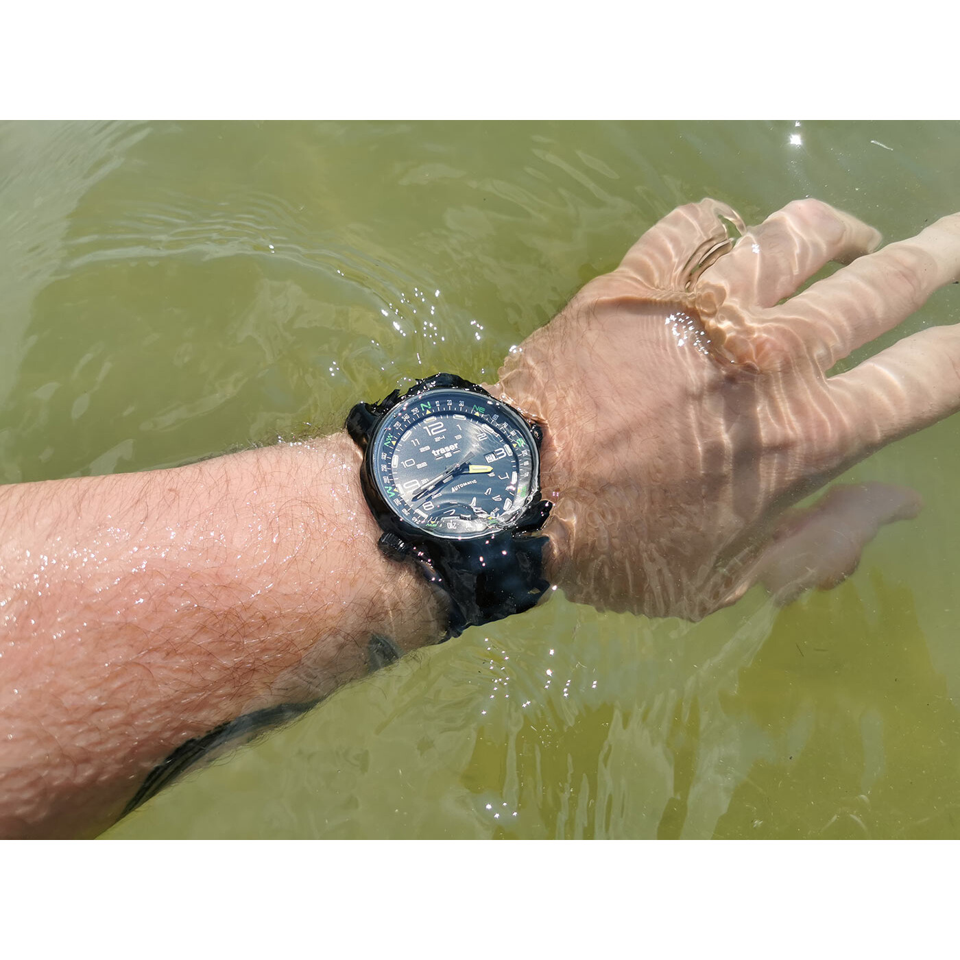 Zegarek męski traser P68 Pathfinder Automatic Black 107718 to niezawodne narzędzie, które nie tylko pokazuje czas, ale także wskazuje kierunki świata, dzięki zintegrowanemu pierścieniowi kompasu. Bez względu na warunki zegarek traser sprawdzi się w miejskiej dżungli, jak i w czasie podboju podwodnego świata. Ten męski czasomierz staje się niezastąpionym towarzyszem, pomagającym określić kierunek geograficzny i prowadzącym za duchem przygody. Dzięki technologii Trigalight®, która jest samowystarczalnym źródłem światła, zapewnia doskonałą widoczność nawet w nocy, co sprawia, że zawsze można na nim polegać podczas ekspedycji.