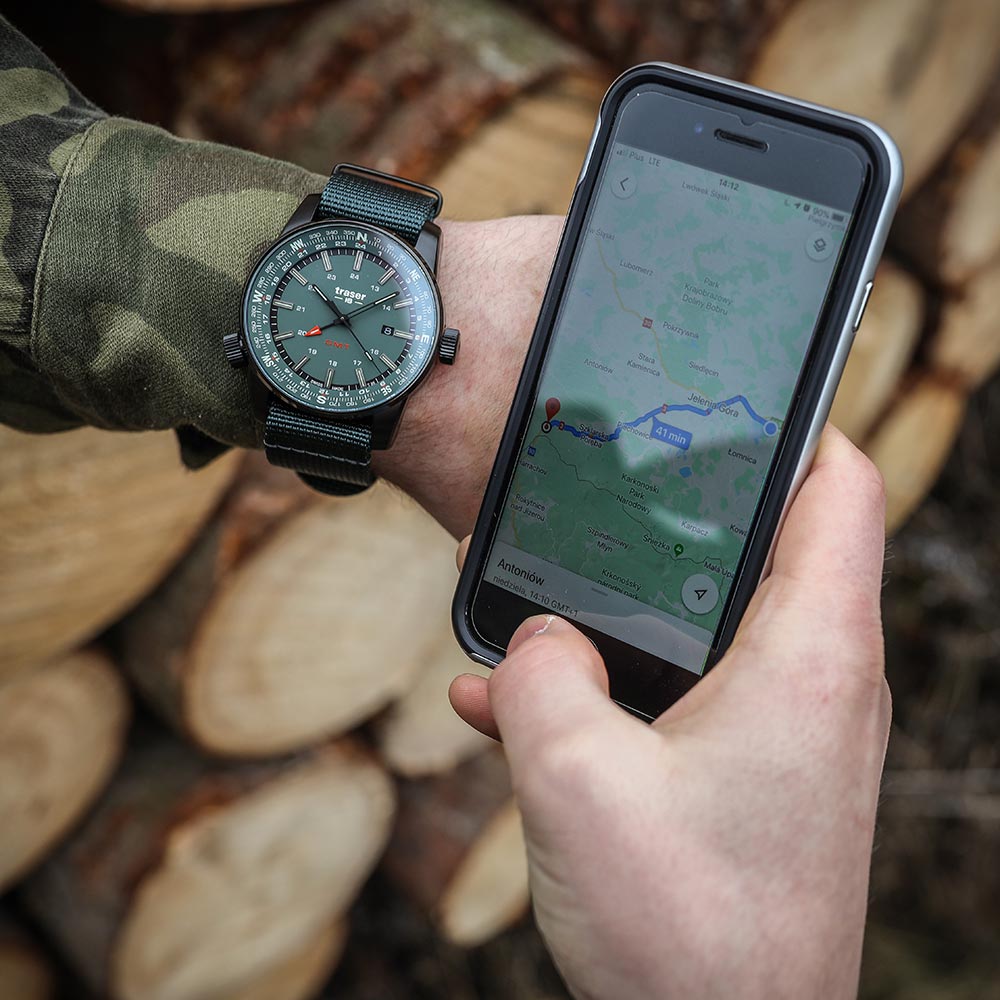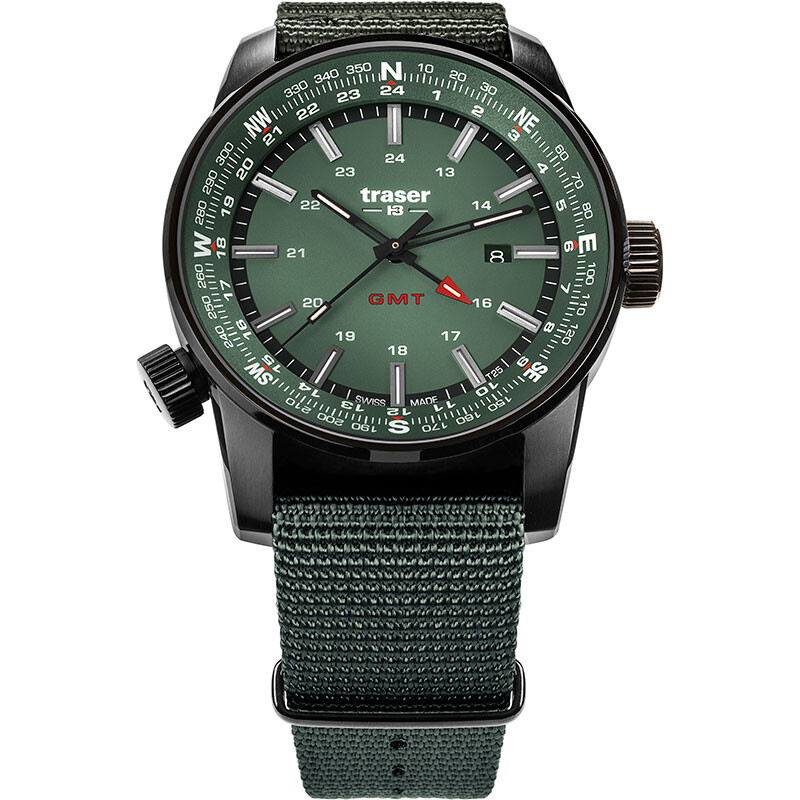 Traser P68 Pathfinder GMT Green 109035 to zegarek taktyczny, który sprawdzi się we wszystkich warunkach, czy to w miejskiej dżungli, czy na jałowych pustyniach. Zintegrowany pierścień kompasu wewnątrz koperty sprawia, że czasomierz ten staje się twoim drogowskazem, aby określić kierunek geograficzny i podążyć za duchem przygody. Wspaniały towarzysz podróżników i odkrywców. Ponieważ musisz polegać na swoim zegarku, technologia Trigalight® – samowystarczalne źródło światła, gwarantuje doskonałą widoczność, bez względu na to gdzie jesteś – nawet w nocy.