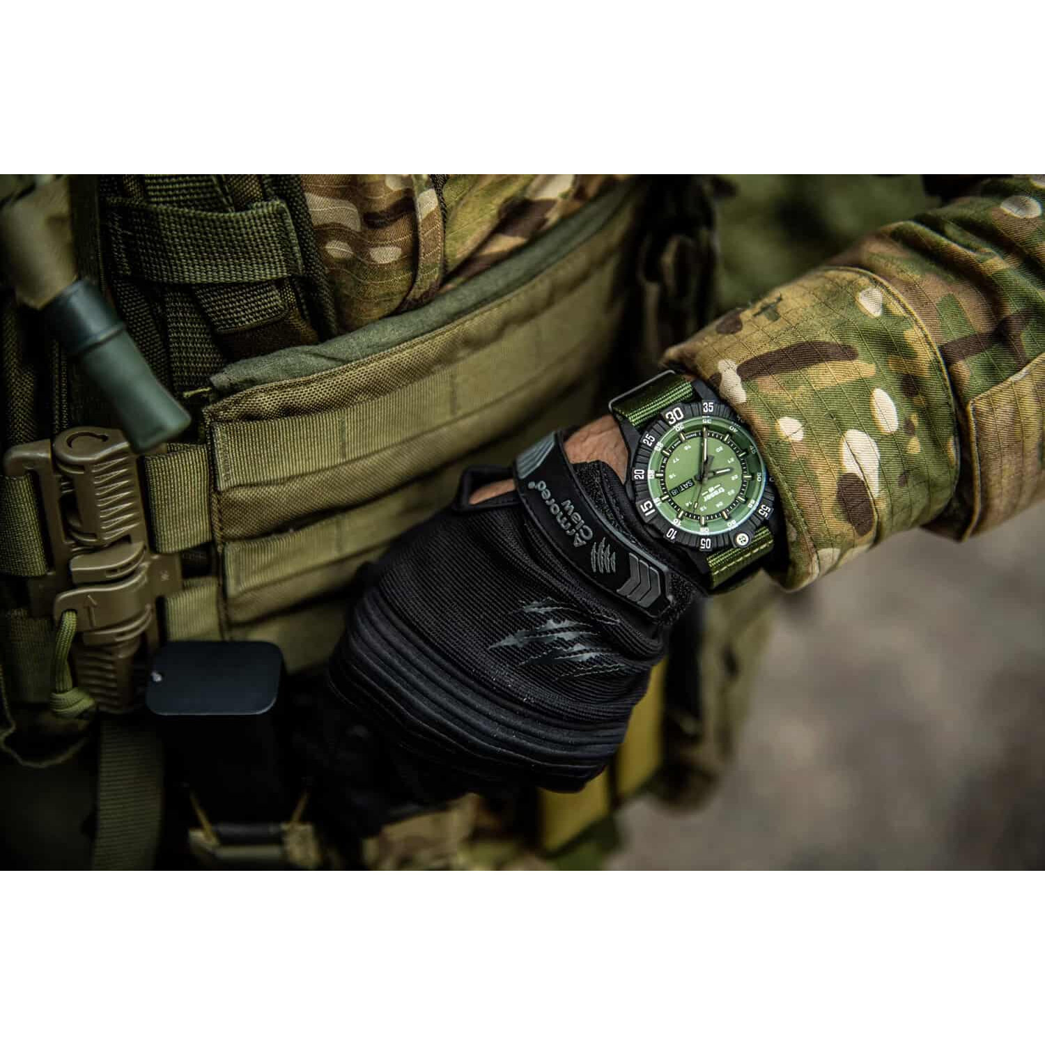 Traser P99 Q Tactical 110726 to wytrzymały i świetnie prezentujący się czasomierz dla prawdziwych mężczyzn. Zegarek dzięki wykorzystanym materiałom jest lekki i będzie użytkował się z wysokim komfortem. Cyferblat jest bardzo czytelny, a dzięki podświetleniu trigalight odczytamy aktualną godzinę w każdych warunkach oświetleniowych. Czasomierz świetnie wygląda na nadgarstku i cieszyć będzie oko każdego właściciela. Zegarek traser P99 Q Tactical jest gotowy wyruszyć na Twoją przygodę.