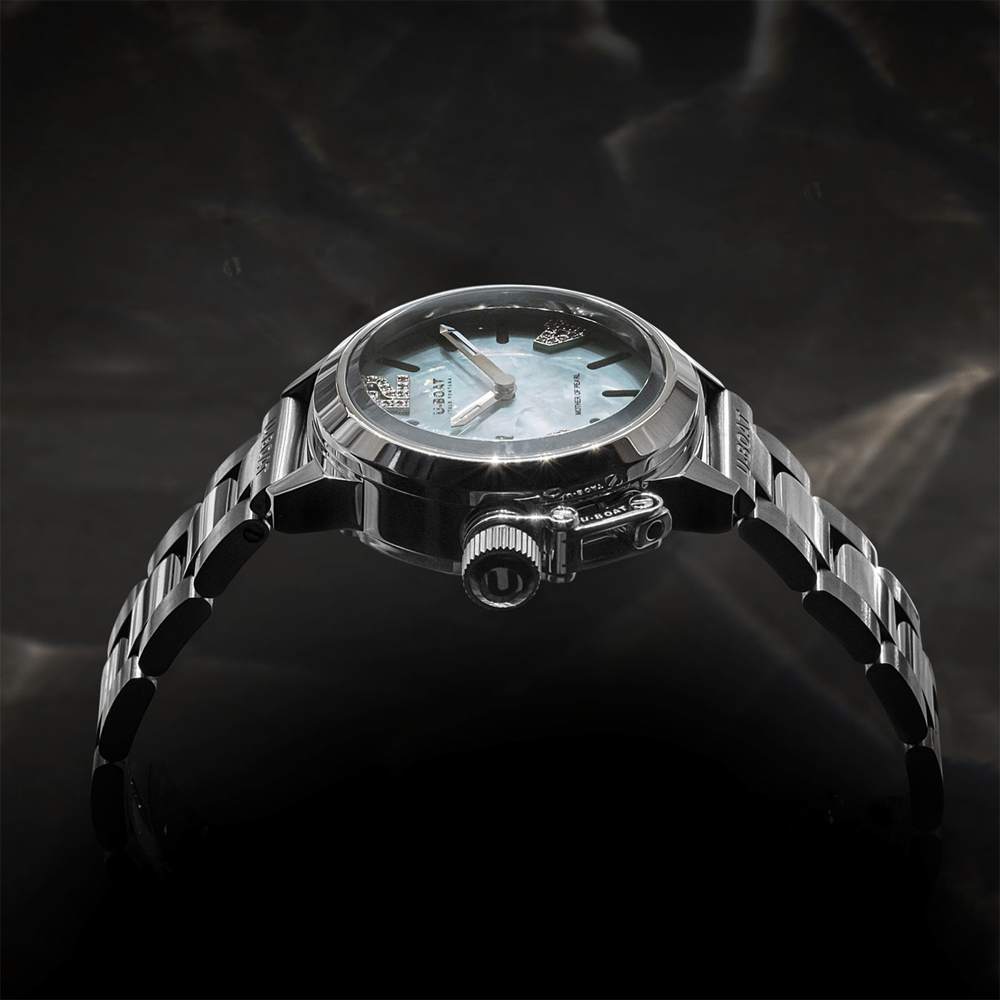 Trzypoziomowy cyferblat zegarka z diamentami i masą perłową U-Boat Mother Of Pearl otula 30-milimetrowa wysoce polerowana koperta ze stali nierdzewnej 316L. Duży efekt wizualny stwarza lśniący pierścień, a także charakterystyczna dla marki koronka z lewej strony wyposażona w opatentowany system ochrony. Bransoleta składa się z 3 rzędów, które cechują 2 rodzaje wykończeń — polerowane pośrodku oraz szczotkowane po bokach. Co więcej, w tym modelu nawet zapięcie opracowano z myślą o elegancji. Zapinane jest ono na zatrzask i ozdobione biżuteryjną literą U od U-BOAT wykonaną ze szkła mineralnego w kolorze tarczy. Mechanizm kwarcowy Swiss Made Ronda 774 umieszczony wewnątrz gwarantuje szwajcarską precyzję.