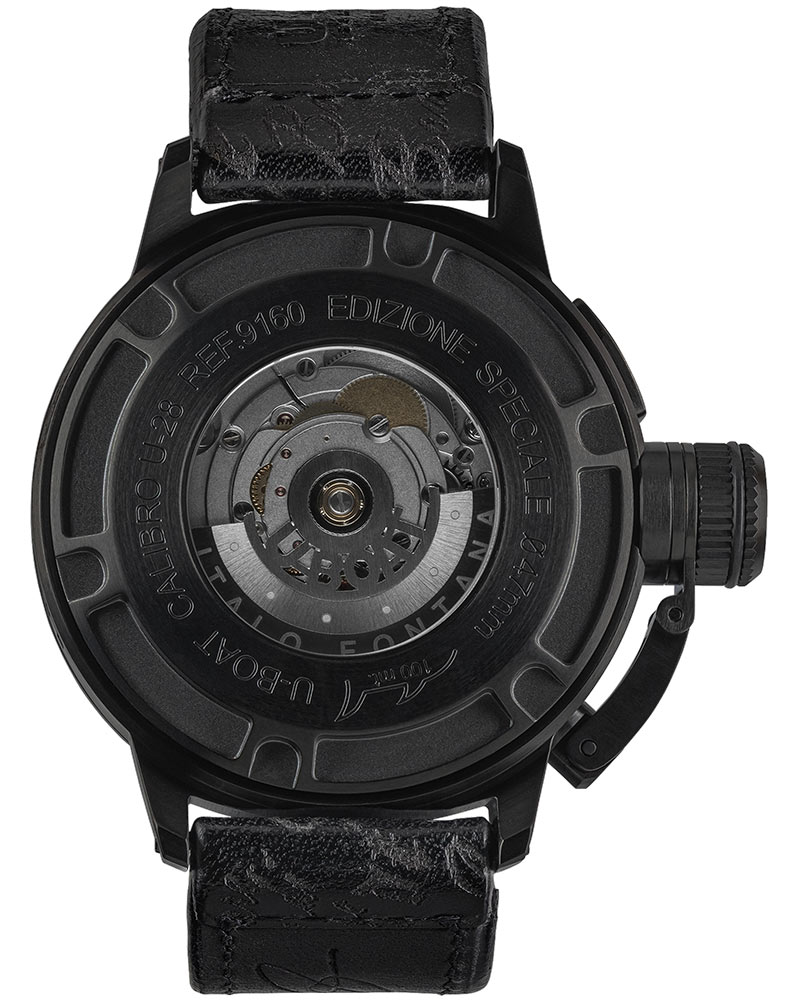 Wewnątrz obudowy znajduje się mechanizm automatyczny spersonalizowany pod standardy U-BOAT - spersonalizowany rotor z logo. Werk cechuje 44-godzina rezerwa chodu. Dzięki deklowi z przydymionego szkła można podejrzeć jego niezawodnie pracującą konstrukcję.