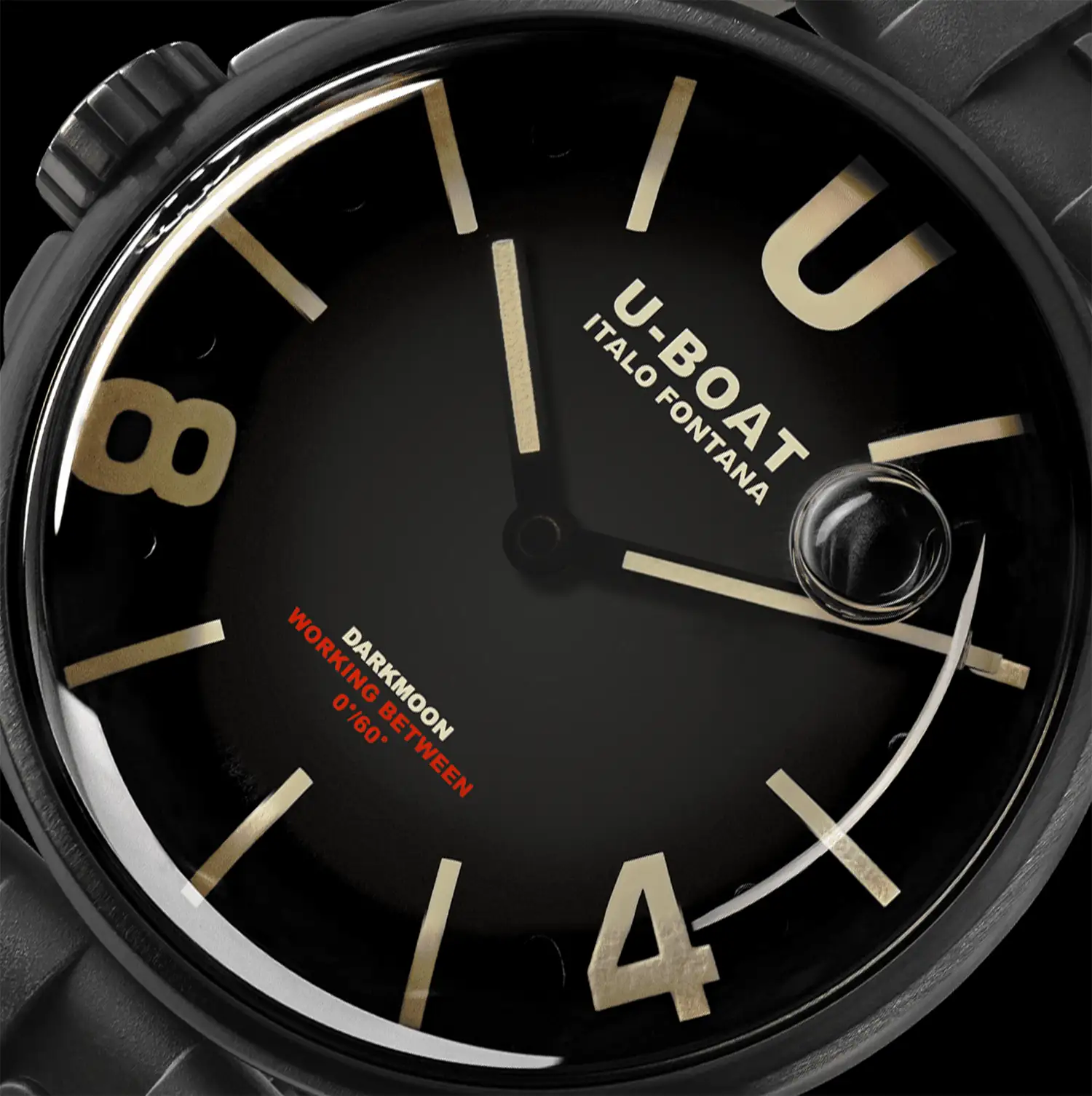 Kolekcja zegarków z bąbelkiem na tarczy U-Boat Darkmoon, jak zdradza twórca, wyłoniła się wprost z Księżyca, a dokładnie z jego, ciemniejszej strony. Podążając za pomysłem odkrytym po raz pierwszy przy pomocy modelu Capsoil, Darkmoon jeszcze bardziej zagłębia się w innowacyjną koncepcję „oleju immersyjnego”. Cała elektromechanika zegarka ze szwajcarskim mechanizmem kwarcowym Ronda jest teraz zanurzona w kąpieli olejowej. Oleista ciecz całkowicie otacza tarczę o wykończeniu soleil, tworząc iluzję nieistniejącego szkła oraz intensyfikując do maksimum niebieski odcień, a także czyniąc skalę czasu czytelną, jak w żadnym zegarku innego pochodzenia. Co więcej, pod wypukłym szkłem szafirowym bezustannie i swobodnie, w rytm ruchu nadgarstka, przemieszcza się kompensacyjny pęcherzyk powietrza, który dodatkowo podsyca atrakcyjny wizerunek czasomierza i dowodzi ambitnego, kreatywnego oraz niezależnego podejścia Italo Fontany do kwestii projektowania.