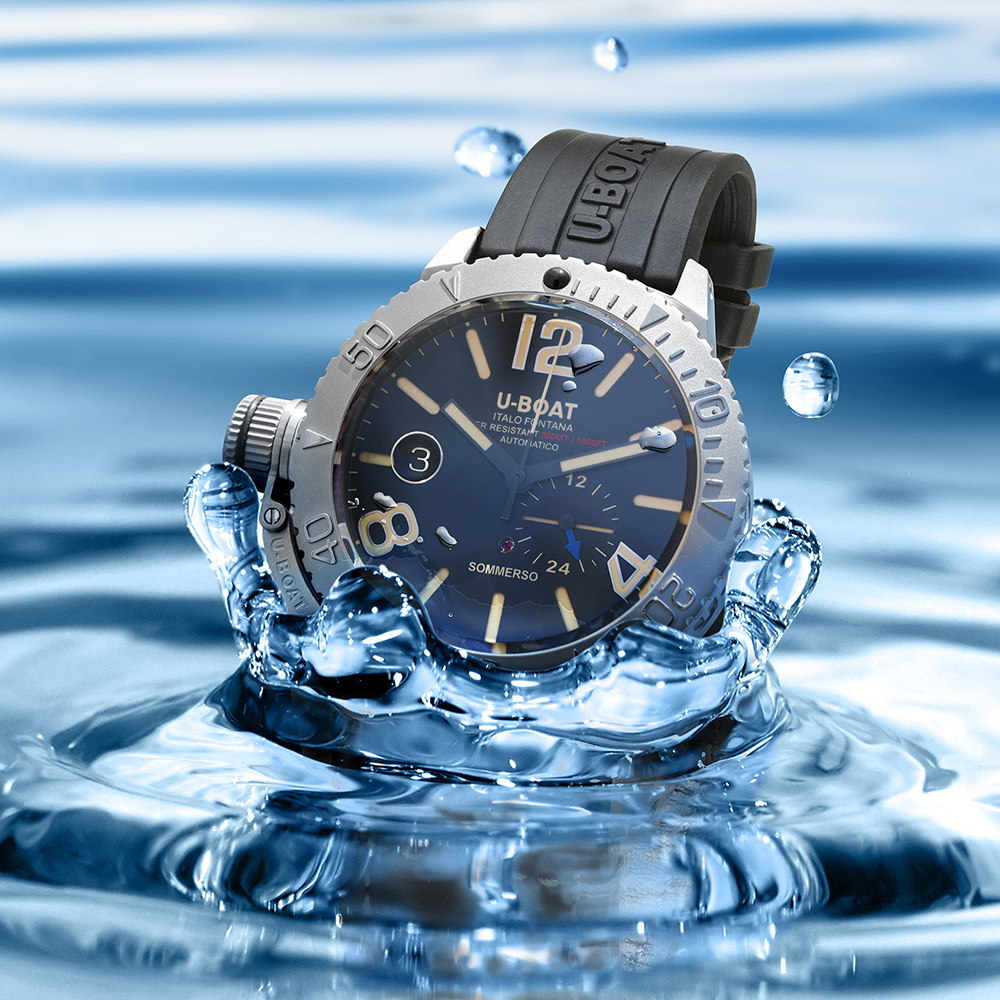 U-BOAT ITALO FONTANA SOMMERSO/A 9007/A z ikoniczną, masywną i niezwykle poręczną obudową zakręcanej koronki po lewej stronie, wysoką klasą wodoszczelności do 30 bar, 300 metrów, pozwalającą na zawodowe nurkowanie, oraz ze szwajcarskim mechanizmem automatycznym stanowi idealną ofertę dla Panów o podwodnej pasji, sympatii do wodnych konwencji oraz dla tych, którzy pragną się wyodrębnić w niebanalny sposób. SOMMERSO/A doda swemu użytkownikowi niewysłowionej charyzmy, za którą stoją cenione, włoska jakość i gust.