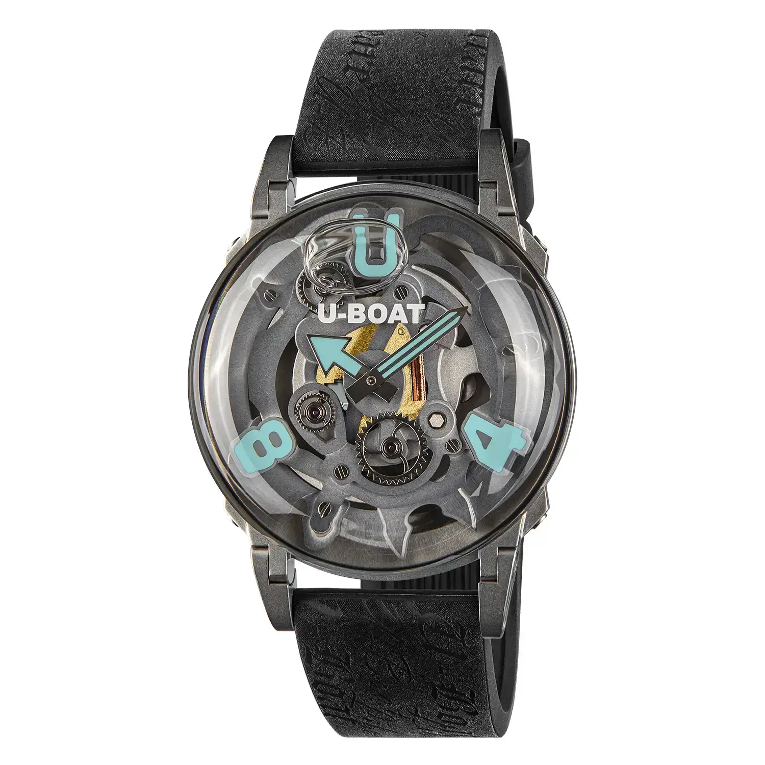 Szkieletowy zegarek zanurzony w oleju U-BOAT U-65 44 mm SS Turquoise 3352 to awangardowy model, który całkowicie przełamuje utarte schematy współczesnego zegarmistrzostwa. Jego wyrazista, „hiperokrągła” forma prowokuje do zmiany spojrzenia na sposób prezentacji czasu. Model powstał z myślą o mężczyznach, którzy nie akceptują kompromisów – zarówno w estetyce, jak i w technologii. Koperta ze stali nierdzewnej 316L o średnicy 44 mm oraz opatentowane ruchome uszy silikonowego paska zapewniają maksymalną ergonomię i komfort noszenia, niezależnie od kształtu nadgarstka.
