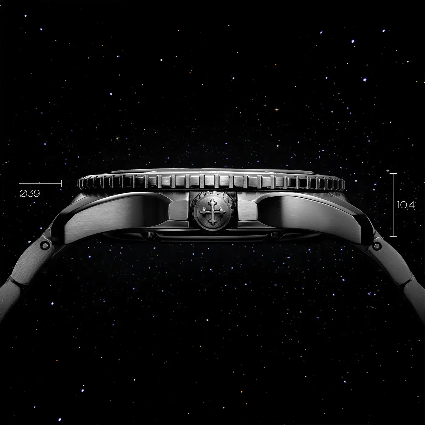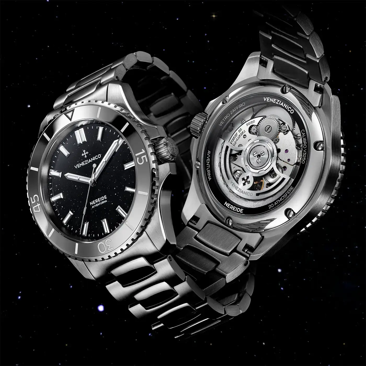 Zaprojektowany z myślą o najwyższej funkcjonalności, zegarek nurkowy Venezianico oferuje wodoszczelność na poziomie około 200 metrów (20 ATM), co czyni go prawdziwym diverem, inspirowanym historyczną wenecką łodzią podwodną Nereide. Dzięki wypełnionym Super-LumiNova® BGW9 indeksom w formie sztabek i wskazówkom, model Venezianico Avventurina zapewnia perfekcyjną widoczność nawet w głębokiej ciemności. Jego unikalne połączenie wytrzymałości i wyrafinowanego stylu sprawia, że zegarek wodoszczelny do 200 metrów doskonale sprawdzi się zarówno na nadgarstku miłośnika elegancji, jak i osoby poszukującej niezawodnego towarzysza do aktywnego stylu życia. Zegarek męski na bransolecie Venezianico to połączenie doskonałej technologii, włoskiego designu i szwajcarskiej precyzji w jednym, wyjątkowym czasomierzu.