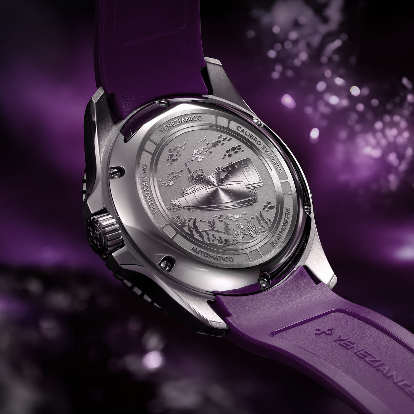 Nereide 42 Ametista to nie tylko symbol kunsztu rzemieślniczego, ale również hołd dla bogatej historii Wenecji, miasta od wieków związanego z handlem kamieniami szlachetnymi. Inspiracja łodzią podwodną Nereide, której wizerunek zdobi grawerowany dekielek, podkreśla charakter tego modelu jako profesjonalnego zegarka do nurkowania. Wodoszczelność do ok. 200 metrów oraz wygodny pasek sprawiają, że zegarek męski do nurkowania Venezianico doskonale sprawdza się w wodnych warunkach, zachowując jednocześnie luksusowy wygląd. Niezależnie od okazji, zegarek męski z fioletową tarczą Venezianico Ametista łączy w sobie wyjątkowy design, funkcjonalność i historię, czyniąc go idealnym wyborem dla koneserów zegarmistrzostwa i miłośników ponadczasowej elegancji.