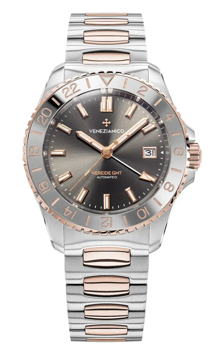 Automatyczny zegarek z funkcją drugiej strefy czasowej Venezianico Nereide GMT Grand Tour oferuje unikalne doświadczenie – możliwość noszenia na nadgarstku esencji podróżniczego ducha, precyzji i włoskiego designu inspirowanego Wenecją oraz kulturą wielkich europejskich wypraw między Zachodem a Wschodem.