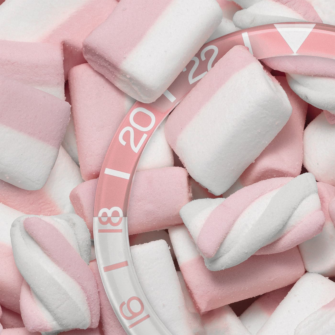 Wariant Nereide GMT Rosa przyciąga uwagę wyjątkową tarczą w odcieniu słodkiego różu o matowym wykończeniu – inspirowaną pastelowymi piankami marshmallow. Subtelna gra światła nadaje głębi i miękkości, a indeksy pokryte substancją BGW9 Super-LumiNova® zapewniają doskonałą widoczność również w ciemności. Na tarczy widnieje napis „Subacqueo” – włoskie określenie podkreślające nurkowy charakter modelu. Całość harmonizuje z unikalnym dwukolorowym bezelem 24-godzinnym wykonanym z kryształu optycznego BK7 – materiału o wyjątkowych właściwościach optycznych: niskiej dyspersji (Abbe ~60), niskim współczynniku załamania (~1,52) i bez zawartości ołowiu. Górna część bezela ma matowy, nieco mleczny odcień, natomiast dolna – lustrzane wykończenie, charakterystyczne dla linii Nereide GMT, co stanowi zarazem praktyczny i estetyczny wyróżnik.