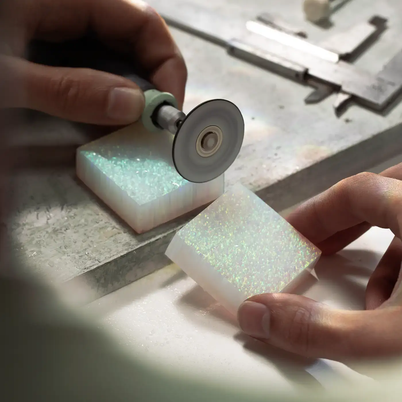 Limitowany zegarek męski Venezianico Nereide Opale Limited Edition to czasomierz, który wymyka się prostym definicjom, stawiając w centrum uwagi jeden z najbardziej fascynujących materiałów w zegarmistrzostwie – opal hodowany laboratoryjnie, zabezpieczony szkłem szafirowym z powłoką antyrefleksyjną. Tarcza tego modelu nie jest produktem masowej matrycy, lecz efektem żmudnej, w pełni ręcznej obróbki mineralnej, gdzie każdy płat kamienia jest stopniowo szlifowany do wymaganej grubości z zachowaniem najwyższej ostrożności. To właśnie ten manualny proces sprawia, że mikrosfery krzemionki wewnątrz tarczy zyskują zdolność do unikalnego rozszczepiania światła, tworząc hipnotyzujące refleksy, których nie da się powtórzyć w żadnym innym egzemplarzu. Wybierając zegarek z tarczą z opalu Venezianico, decydujesz się na żywy obraz na nadgarstku, który reaguje na najmniejszy ruch ręki, przechodząc od głębokich morskich tonów po jaskrawe, neonowe rozbłyski.