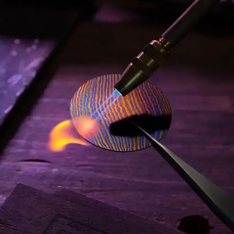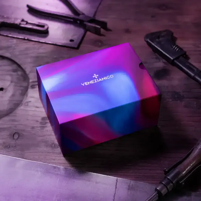 Venezianico Nereide Ti-Damascus Limited Edition to męski zegarek kolekcjonerski, który celebruje kunszt metalurgii w jej najbardziej ekskluzywnej formie. Powstały z inspiracji starożytną sztuką damasceńską oraz nowoczesnymi eksperymentami materiałowymi, zachwyca tarczą wykonaną z unikalnego tytanu damasceńskiego. Każdy egzemplarz limitowanej edycji Nereide Ti-Damascus — dostępnej w zaledwie 500 sztukach — jest prawdziwym dziełem sztuki, na którym ręcznie wypracowane wzory i odcienie niebieskiego, złota, miedzi i fioletu tworzą hipnotyzującą, opalizującą mozaikę. Dzięki precyzyjnej obróbce cieplnej, struktura metalu zyskuje żywe refleksy, które zmieniają się w zależności od kąta światła, czyniąc każdy egzemplarz absolutnie niepowtarzalnym.