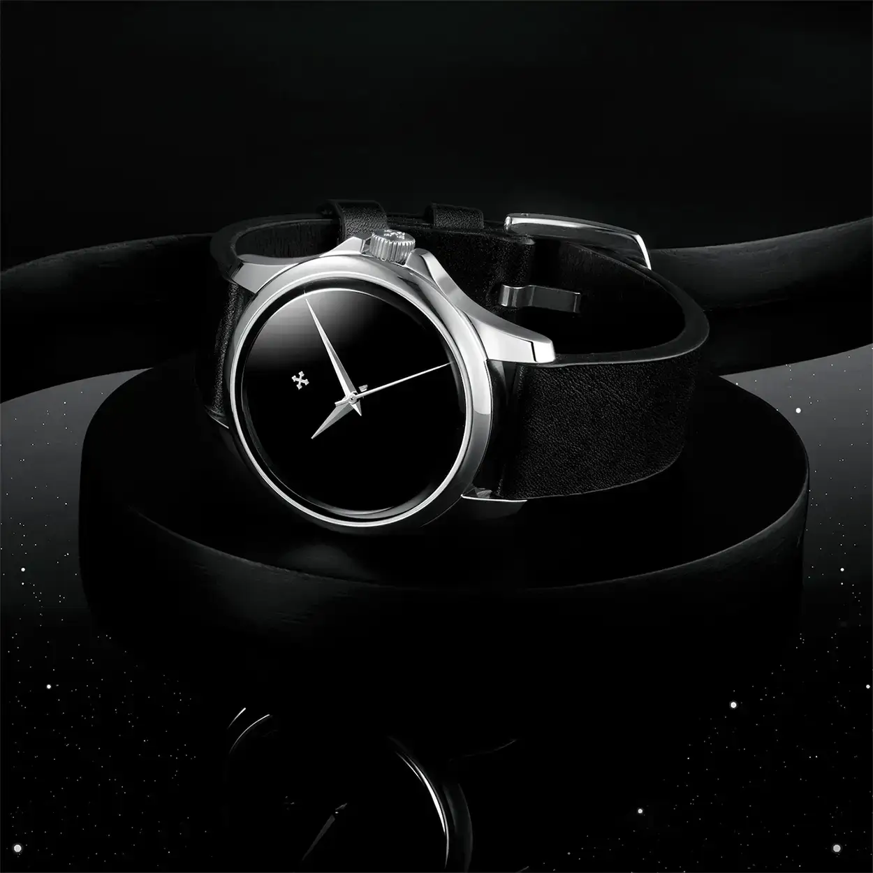 Minimalistyczny zegarek Venezianico Redentore Ultrablack 36 1121510 to perfekcyjny przykład połączenia minimalistycznej estetyki z wyrafinowaną funkcjonalnością, dedykowany osobom ceniącym ponadczasowy styl i unikalne detale. Jego najważniejszym elementem jest tarcza pokryta wyjątkową japońską farbą Musou Black™, zdolną pochłonąć aż 99,4% światła. Tak intensywna czerń tworzy niesamowity efekt wizualny, który sprawia, że tarcza wydaje się niemal trójwymiarowa. Prosty układ indeksów i wskazówek został zaprojektowany w sposób minimalistyczny, co dodatkowo podkreśla głębię koloru i wrażenie absolutnej czerni. Elegancji dodaje stalowa koperta o średnicy 36 mm, wykonana z najwyższej jakości stali nierdzewnej 316L, której polerowane wykończenie doskonale współgra z matowym wyrazem tarczy. Całość prezentuje się niezwykle nowocześnie, a jednocześnie klasycznie, idealnie pasując zarówno do formalnych, jak i codziennych stylizacji.