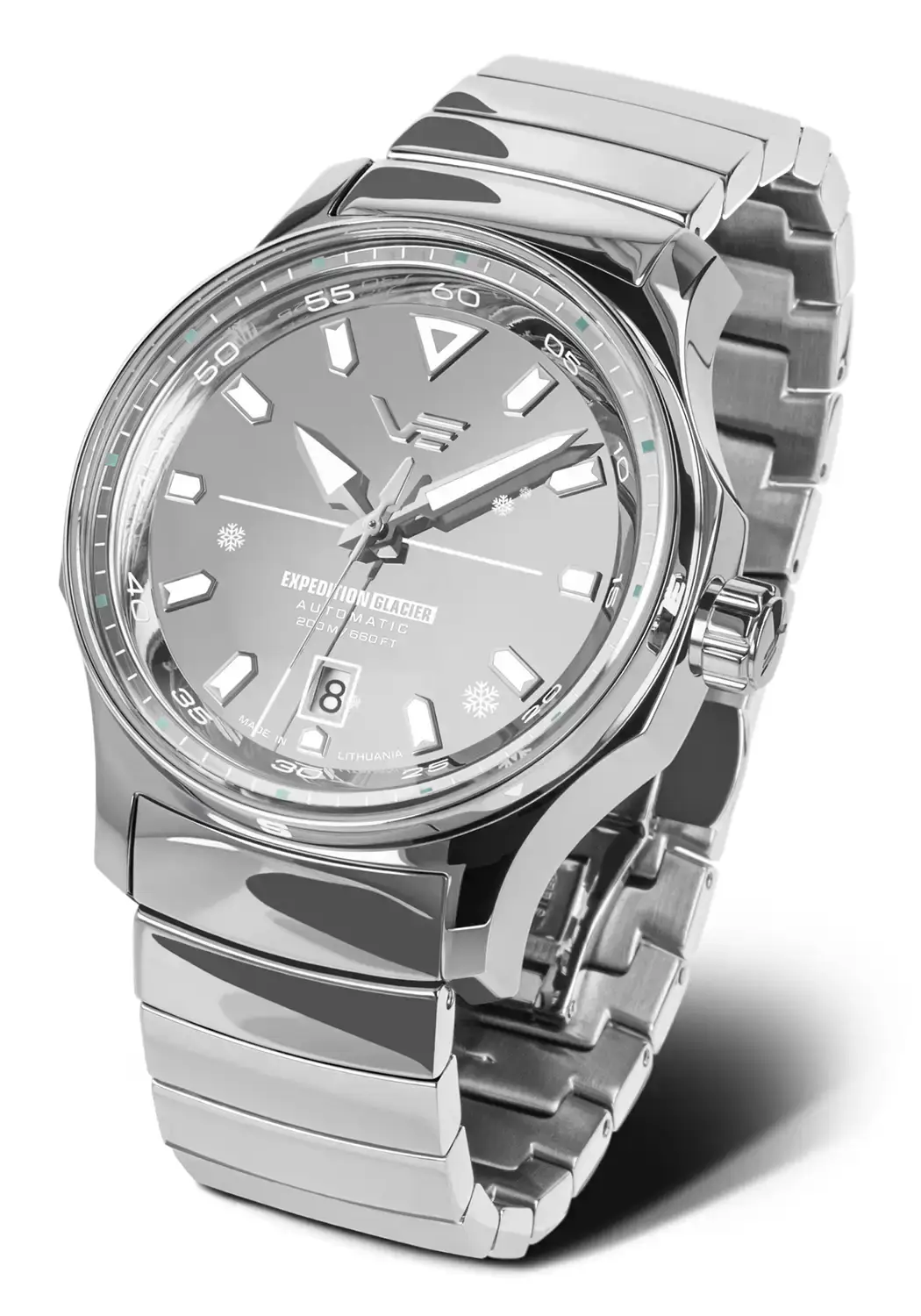 Zegarek męski wypolerowany na lustro Vostok Europe Expedition Glacier łączy ekspedycyjną wytrzymałość z hipnotyzującym, lodowym blaskiem. Limitowany do 500 numerowanych egzemplarzy, każdy zapakowany w specjalne akrylowe pudełko inspirowane litą bryłą lodu.