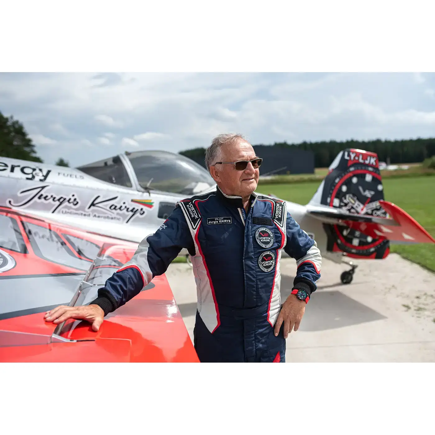 Limitowany zegarek męski typu pilot Vostok Europe Expedition Jurgis Kairys Unlimited Aerobatics VK68-592C775 to specjalna edycja, stworzona w hołdzie dla litewskiego mistrza świata w nieograniczonych akrobacjach lotniczych, Jurgisa Kairysa.
