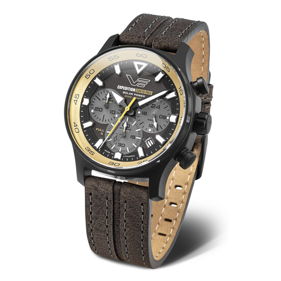 Wielowarstwowa tarcza zegarka VE Made in Lithuania, wyposażona w duże nakładane indeksy i wskazówki pokryte Super-LumiNovą®, zapewnia doskonałą widoczność w słabym świetle. Zakręcany dekiel i koronka zwiększają trwałość oraz odporność na wodę i kurz. Model VR42-592C763 korzysta z energii słonecznej do działania, eliminując potrzebę specjalnego ładowania i wymiany baterii. Światło przechodzi przez półprzezroczystą tarczę, ładując ogniwo słoneczne mechanizmu. Po pełnym naładowaniu solarny zegarek z chronografem Vostok działa do 5 miesięcy w ciemności.