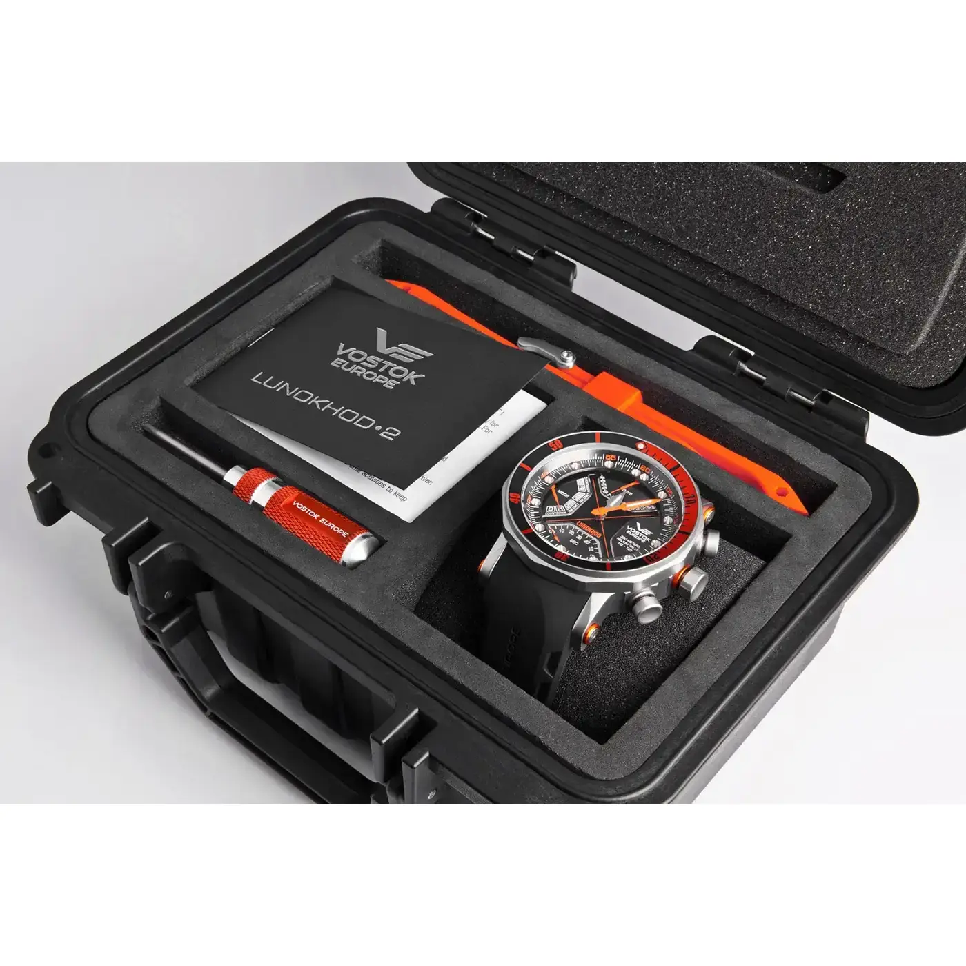 Tarcza tego modelu to prawdziwe technologiczne arcydzieło – jej wielowarstwowa konstrukcja została zabezpieczona hartowanym szkłem K1 o imponującej grubości 3,5 mm, co zapewnia maksymalną odporność na zarysowania i uderzenia. Największą innowacją tego modelu jest zastosowanie 13 szwajcarskich rurek trytowych na tarczy oraz 2 na wskazówkach, co zapewnia doskonałą czytelność nawet w całkowitej ciemności. W przeciwieństwie do standardowego podświetlenia, tryt nie wymaga ładowania światłem słonecznym i utrzymuje nieprzerwaną jasność przez co najmniej 10 lat. Dzięki temu Vostok Europe Lunokhod-2 to nie tylko niezawodne narzędzie pomiarowe, ale także idealny towarzysz ekstremalnych wypraw – od podziemnych ekspedycji po kosmiczne misje. Dodatkowym atutem jest przeszklony dekiel, który odsłania precyzyjnie wykonany mechanizm, nadając zegarkowi ekskluzywnego charakteru.