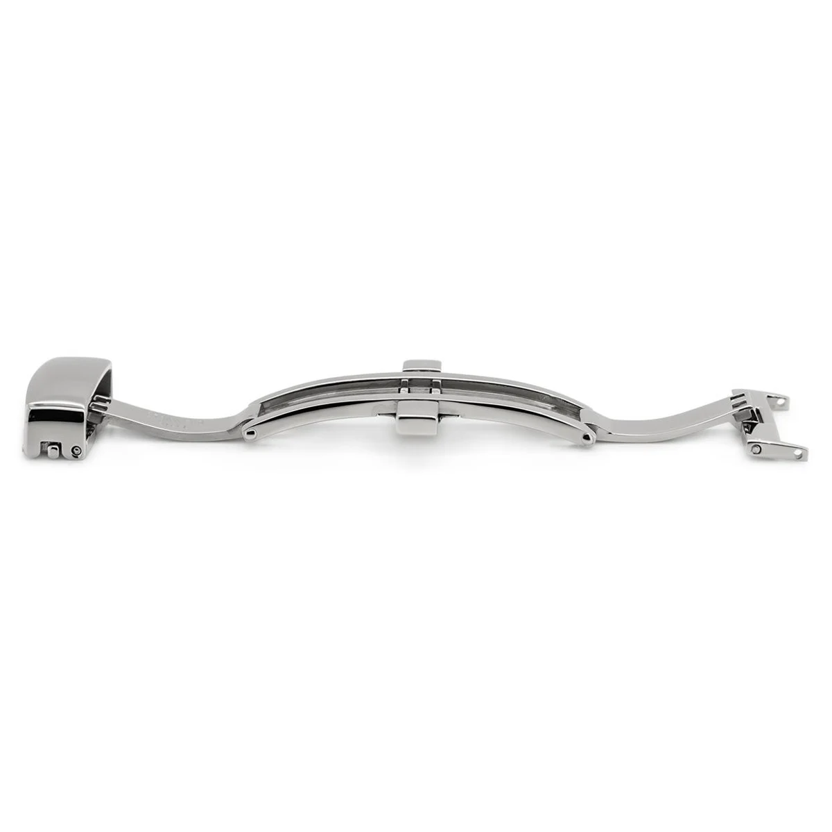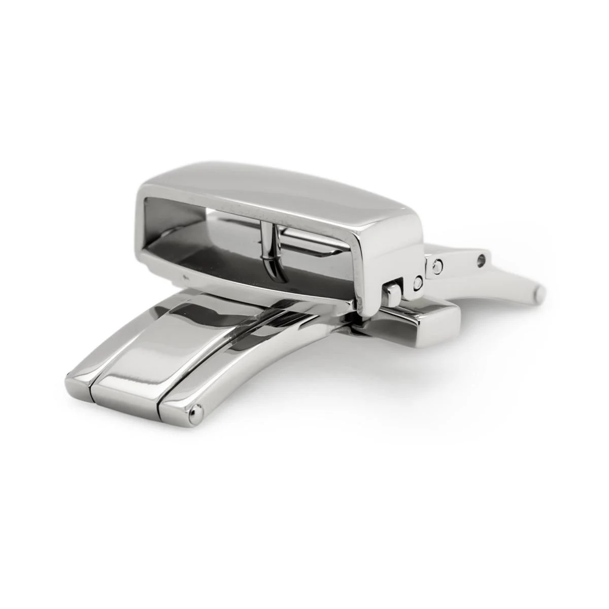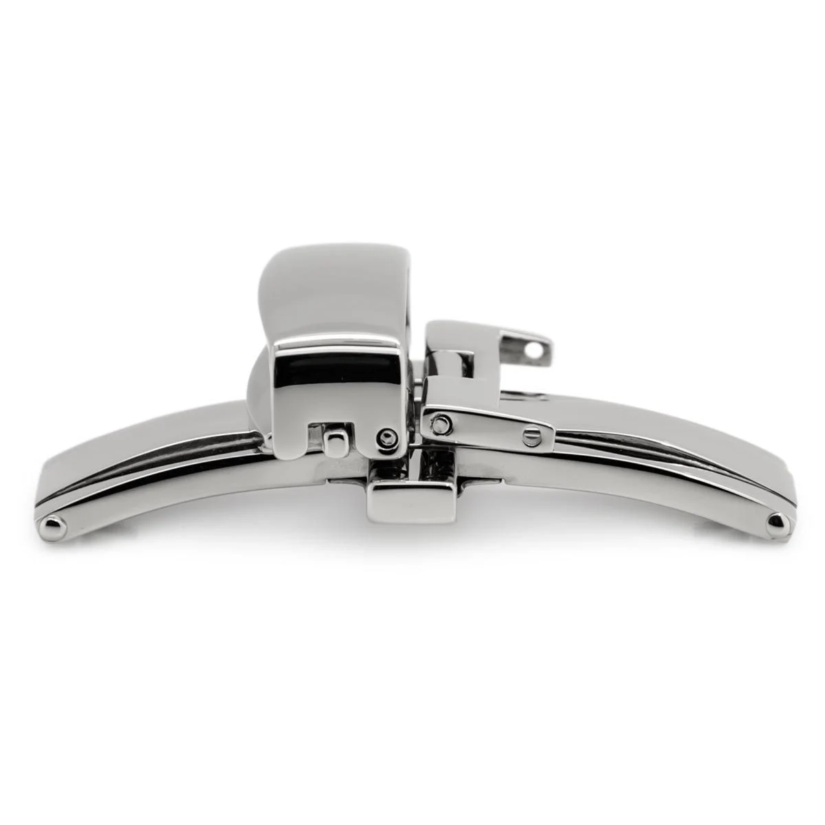Polerowane zapięcie motylkowe ze stali szlachetnej w kolorze srebrnym do pasków skórzanych – dla osób ceniących wygodę, estetykę i trwałość akcesoriów.