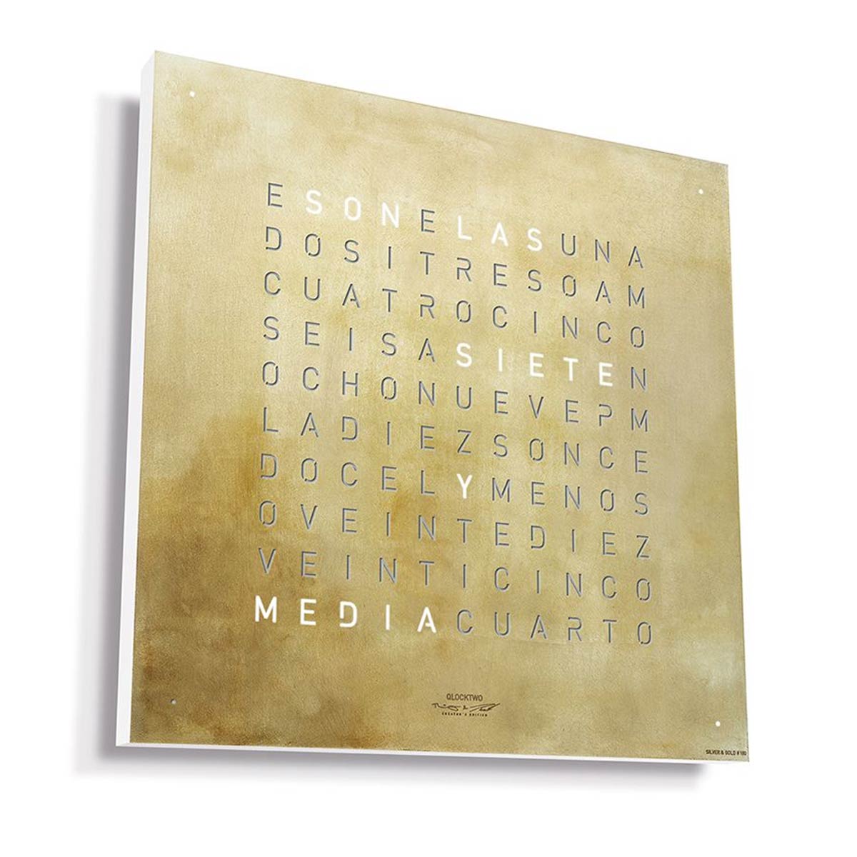 Zegar Qlocktwo Earth 45 Creators Edition Silver & Gold ES Spanish