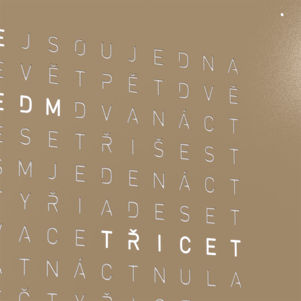 Zegar ścienny, który można również postawić Qlocktwo Earth 45 Hazelnut. Ekskluzywny, prestiżowy design, oryginalny pomysł na prezentację aktualnego czasu, który pokochasz od pierwszego spojrzenia. Koniec z tradycyjnymi wskazówkami. Qlocktwo, to niemiecka manufaktura prezentująca zupełnie odmienne spojrzenie na czas. Qlocktwo wyświetla czas typograficznie w połączeniu z czterema, narożnymi podświetlanymi punktami, symbolizującymi pojedyncze minuty. Słowa na tarczy zmieniają się co 5 minut. Czujniki automatycznie dostosowują światło do warunków oświetlenia zewnętrznego, dzięki czemu bez trudu odczytasz czas w nocy lub przy mocnym nasłonecznieniu wnętrza. Jasność można również ustawiać ręcznie.