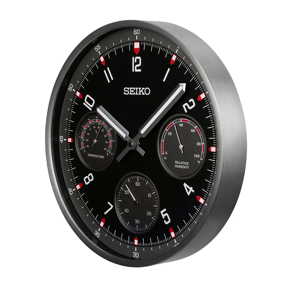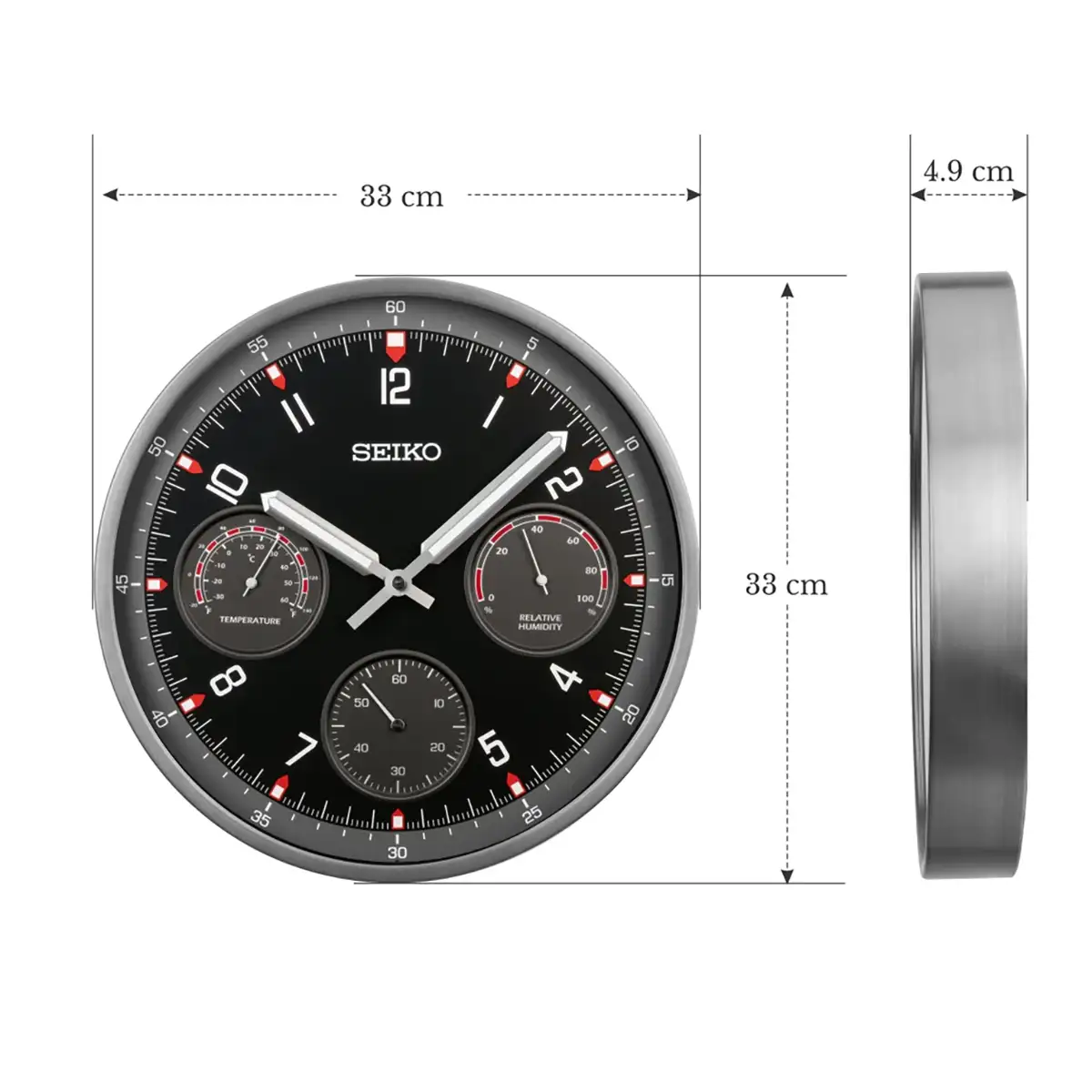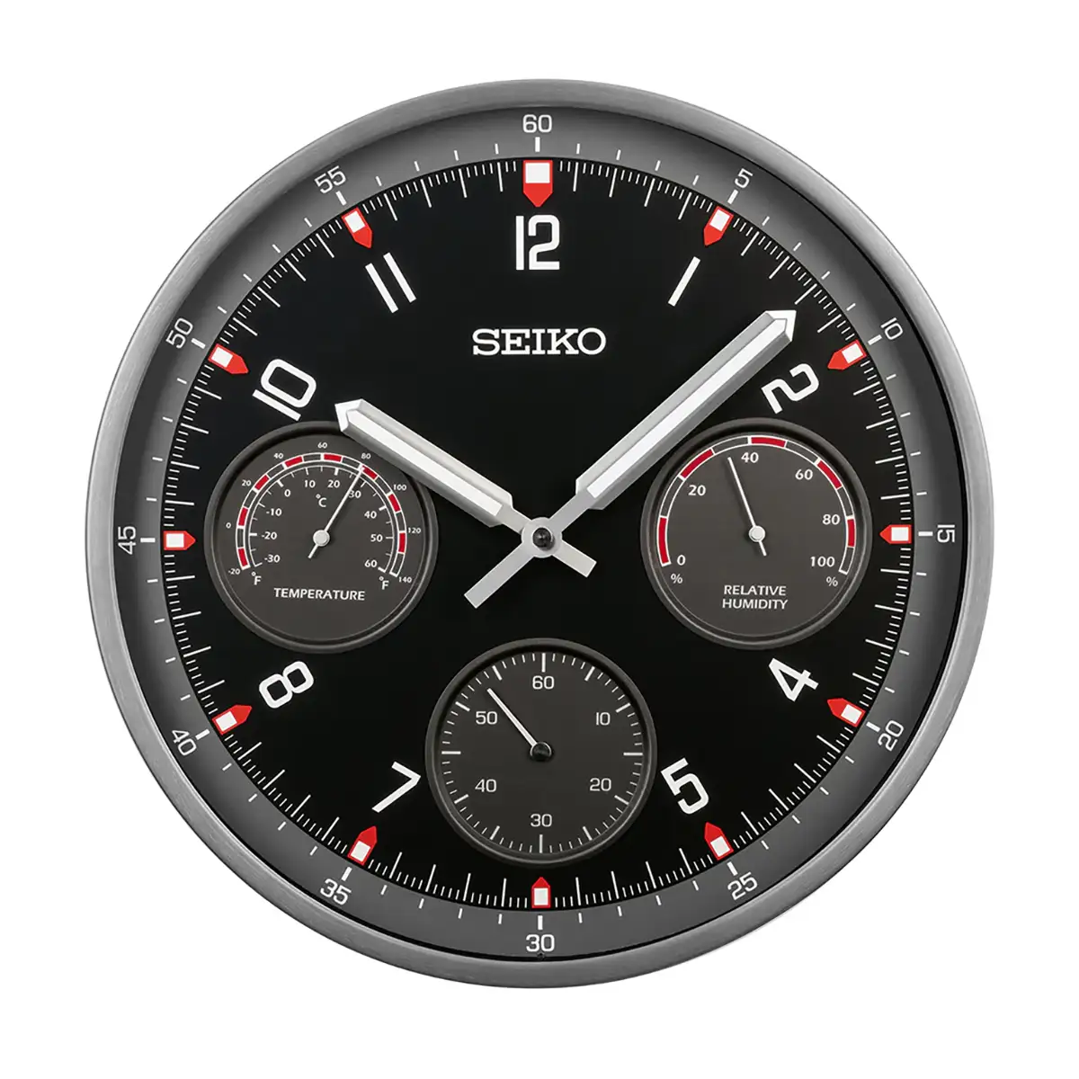 Jako przyrząd do monitorowania domowego klimatu, Seiko QXA823K został wyposażony w dwie precyzyjne tarcze pomocnicze: termometr wskazujący temperaturę oraz higrometr mierzący wilgotność powietrza. Na godzinie szóstej znajduje się niezależny mały sekundnik, który dzięki zastosowaniu mechanizmu typu quiet sweep porusza się płynnie i bezszelestnie. Brak uciążliwego tykania czyni go idealnym wyborem do sypialni oraz miejsc wymagających pełnego skupienia, zachowując przy tym dynamiczny wygląd profesjonalnego chronografu.